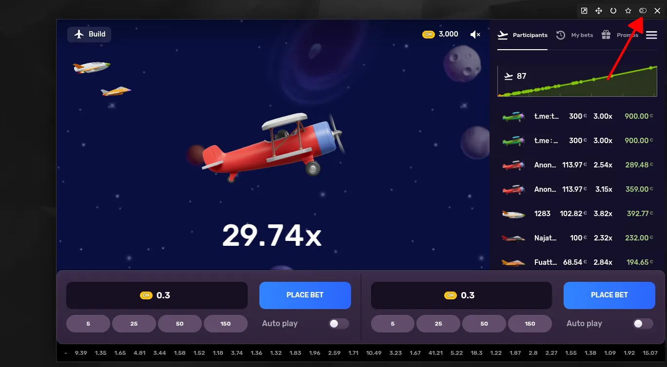 - Auto play. You can preset auto-cash rules—for example, cash out at x5, x10, or any other multiplier. The auto mode is indispensable for those who can’t manually follow each takeoff.