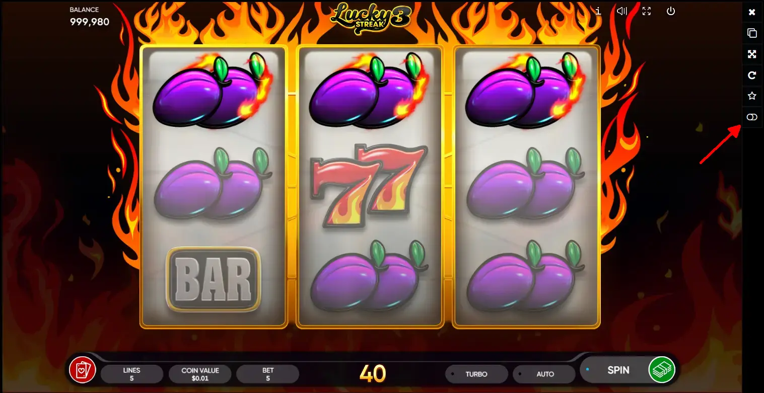 - Барабандар мен сызықтар. Lucky Streak 3-те үш барабан мен үш көлденең қатар бар. Барлығы 5 төлем сызығы қолжетімді, олар солдан оңға бағытталған.