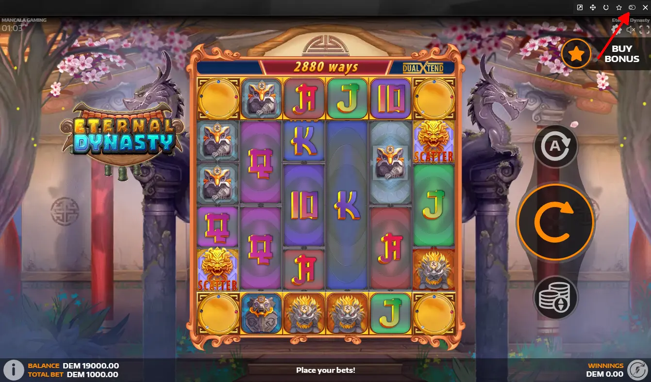 - Optimal mərc: Eternal Dynasty geniş mərc aralığı təklif edir. Böyük uduş potensialı ilə uzun oyun seansı arasında tarazlıq yaradacaq bir məbləğ tapmağa çalışın.