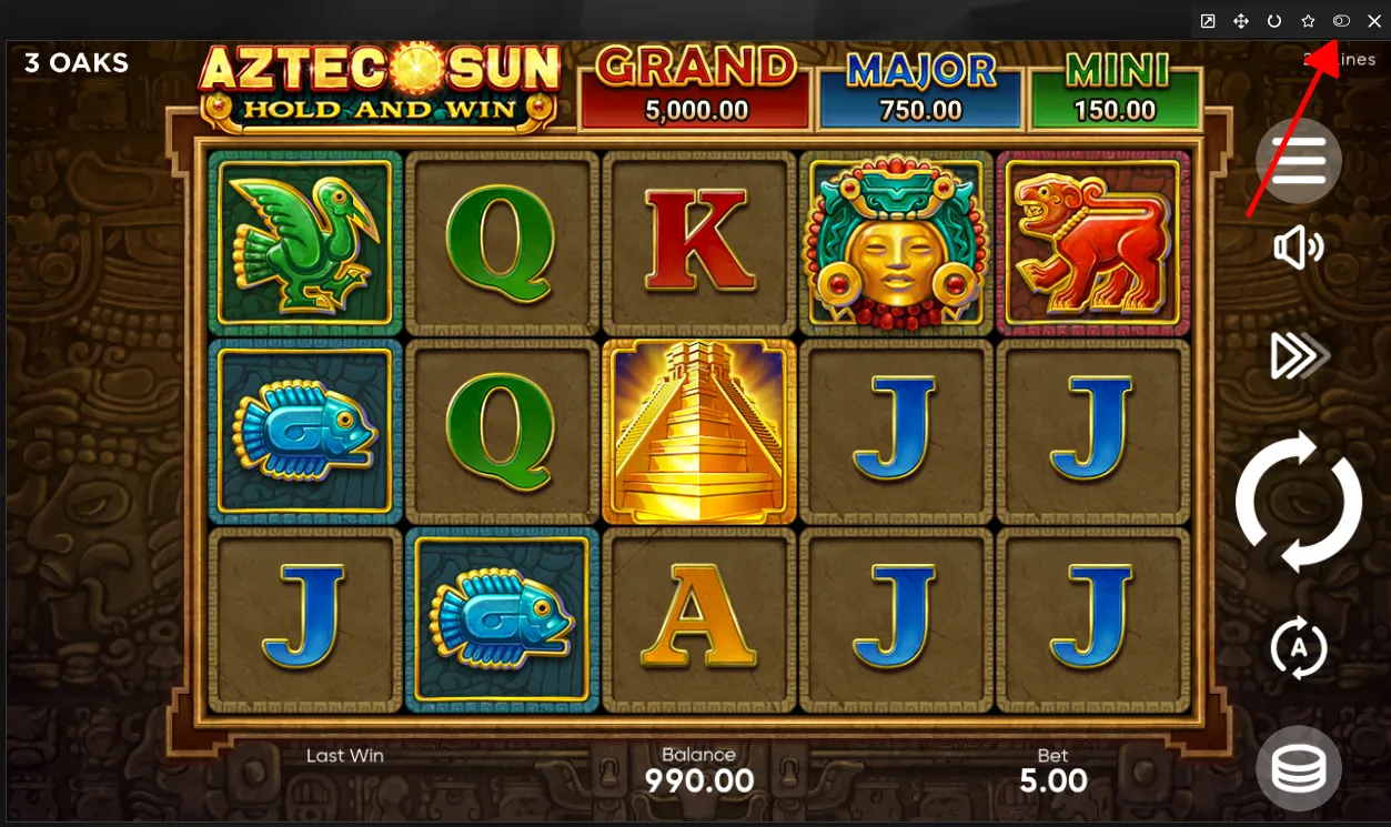 Aztec Sun: Hold and Win — جدید سلاٹ ہے جس میں پانچ ریلیں اور تین قطاریں ہیں جن کے علامات قدیم نوادرات اور جنگل کے جانوروں کی طرز پر بنائے گئے ہیں۔ کھیل گرم سنہری نارنجی رنگوں میں پیش کیا گیا ہے، پس منظر میں گھنے پودے اور عظیم الشان سیڑھی دار اہرام ہیں۔ ماحول کو مزید زندہ کرنے والی موسیقی اور صوتی اثرات کھدائی اور کھوئے ہوئے خزانے کی تلاش کے تھیم میں مکمل غوطہ فراہم کرتے ہیں۔