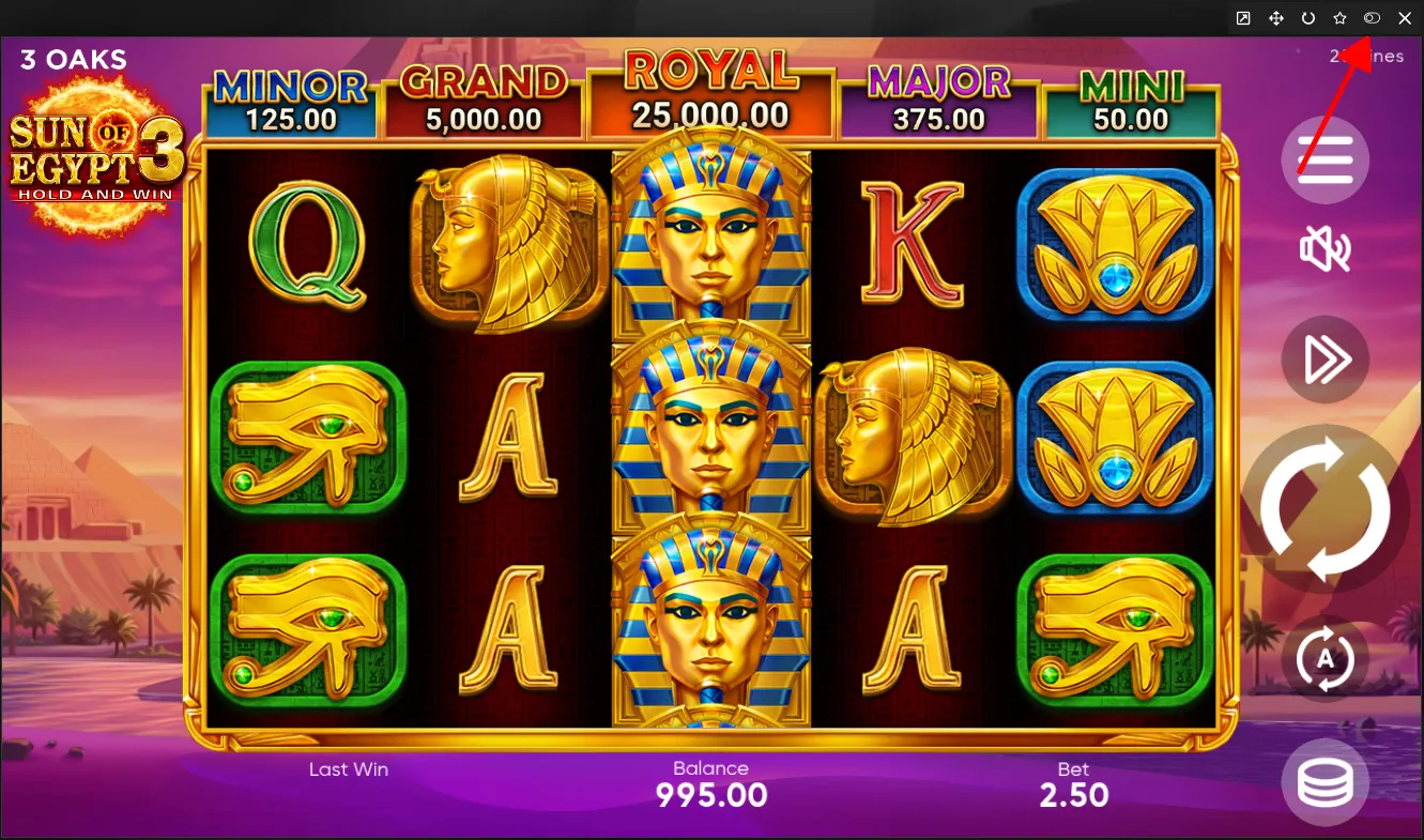 Sun of Egypt 3: Hold and Win میں ادائیگی کی لائنیں
